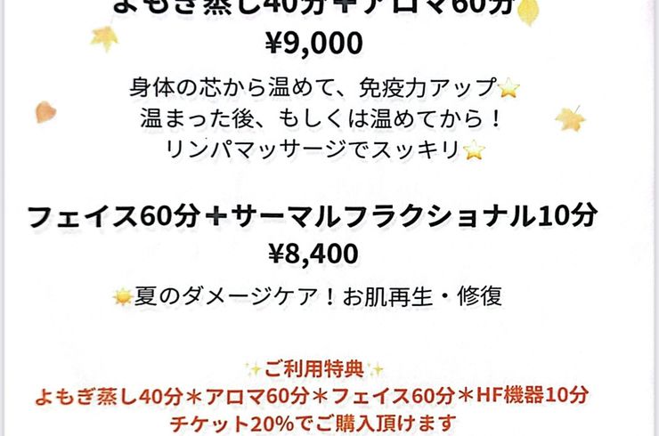 お忙しい方のために10分から施術が受けられるフットバス等のメニューもご用意しておりますので、気軽にご予約ください。
